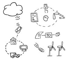 Mobile Internet, Availability of small and powerful sensors, Artificial Intelligence, and Machine Learning. Also: Nanotechnology, Biotechnology, Renewable Energy, Quantum Computing, 3D Printing, etc.